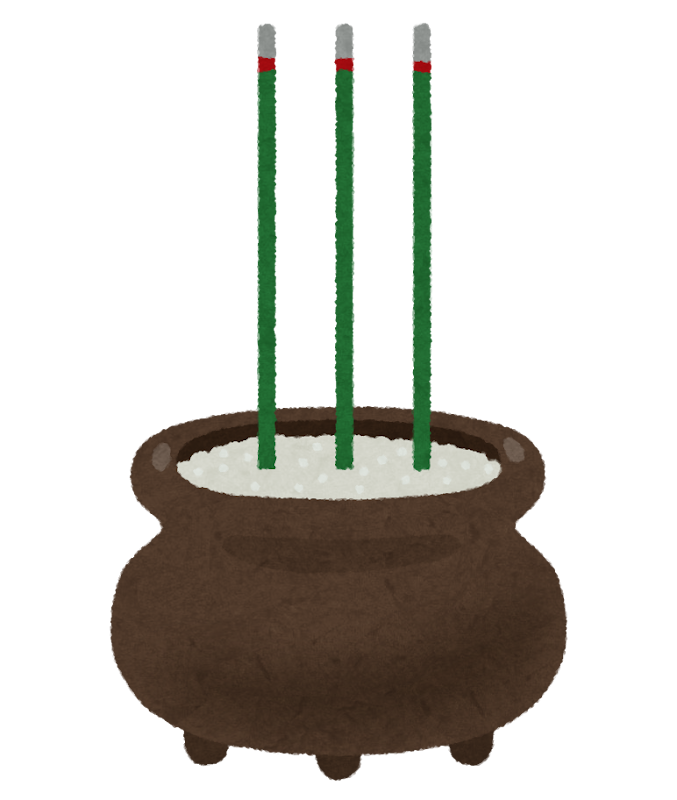 - 3本の場合:香炉の灰に、手前から奥に向かって等間隔に3本立てます。この際、線香の火がついた方を上にして立てるのが一般的です。