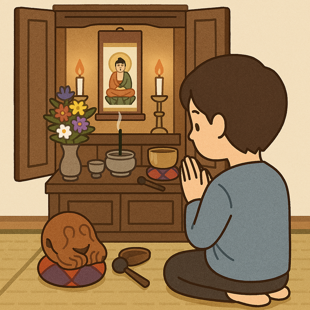 自宅の仏壇で読経する際、リンの澄んだ音は、これから故人や仏様に向き合うための心の準備を促します。また、木魚の規則的な音は、読経のリズムを整え、集中力を高める効果があります。これらの音は、私たちの日常から仏の世界へと意識を向けるための橋渡しとなり、故人への想いや感謝の念をより深く感じさせてくれます。