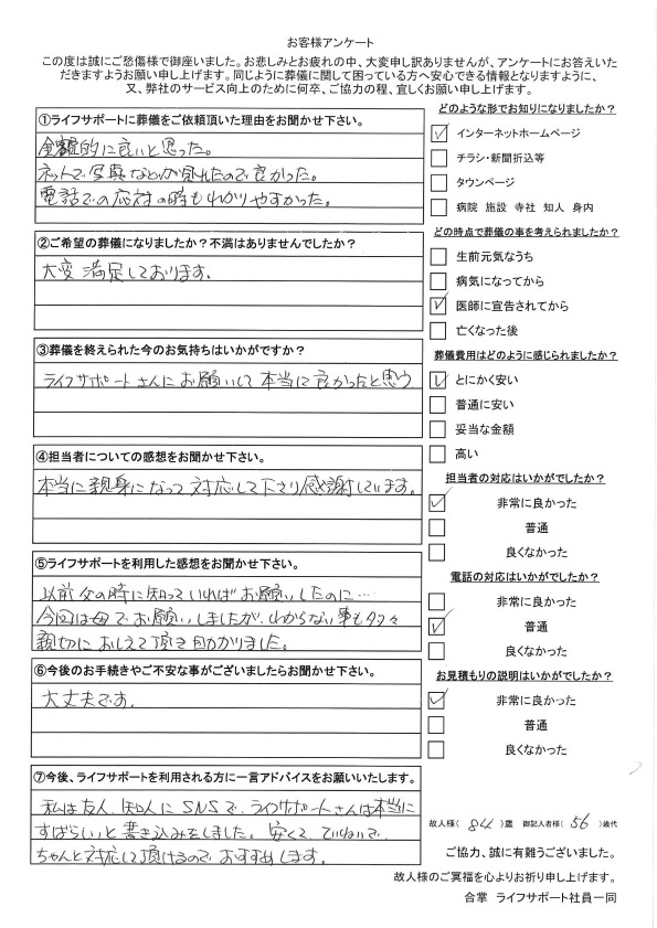 - すごくよかったので家族も身内もライフサポートでお願いしたいと決めているようです。