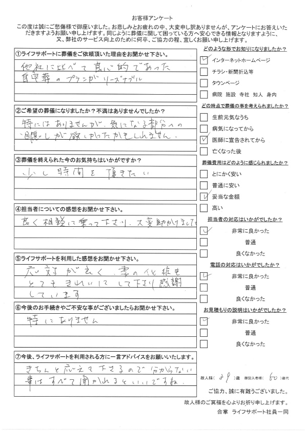 又、生前予約があるということを初めて知り、お願いすることに致しました。