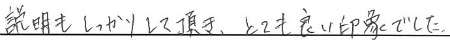 - ご担当いただいた大山さんが、テキパキされていてとても好感度が高かったです。弟が気に入ってました。