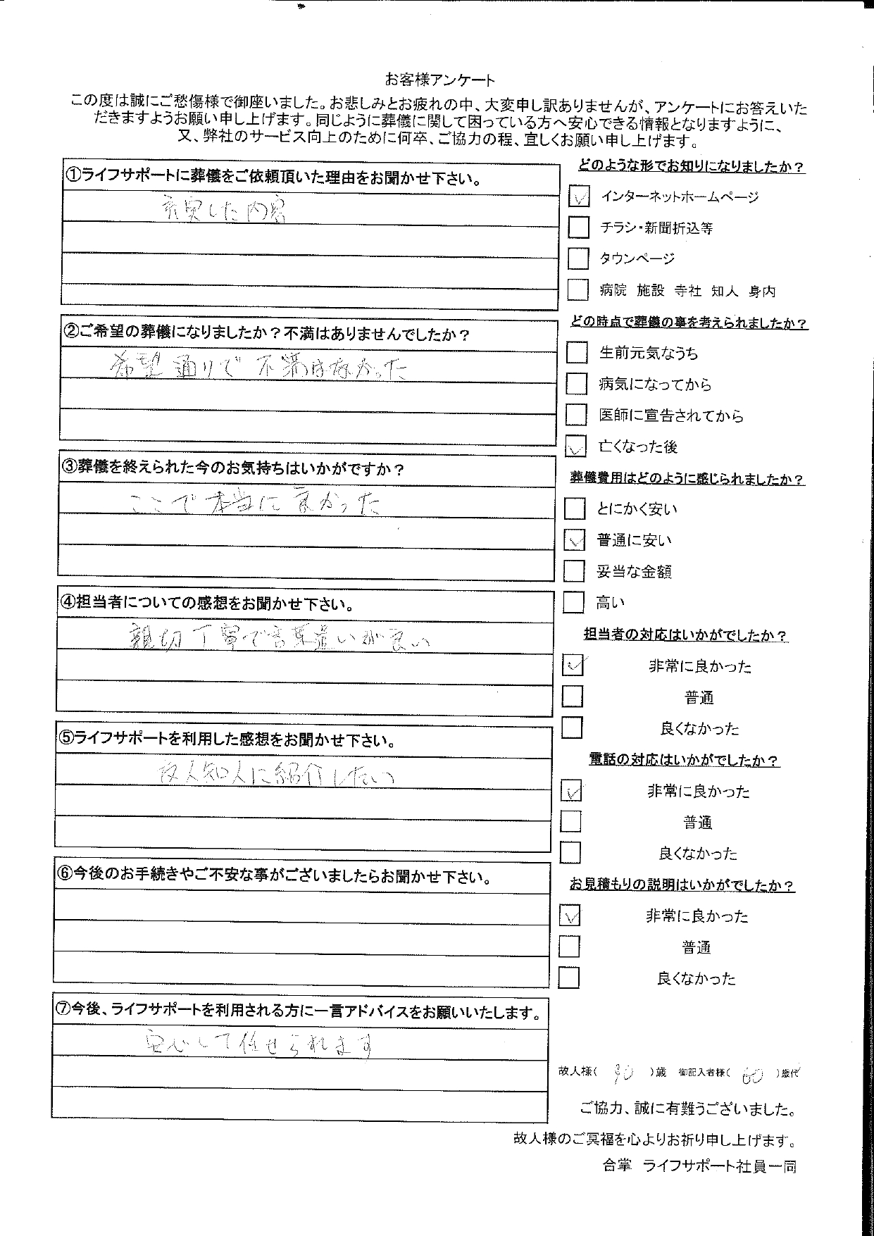 - Q1 ライフサポートに葬儀をご依頼いただいた理由をお聞かせ下さい。
