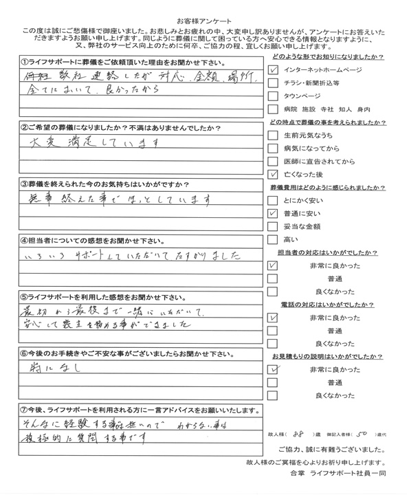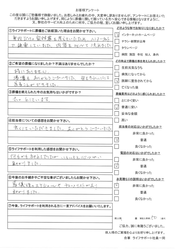 - 家族葬でしたが、とてもよい葬儀になり、感謝しています。